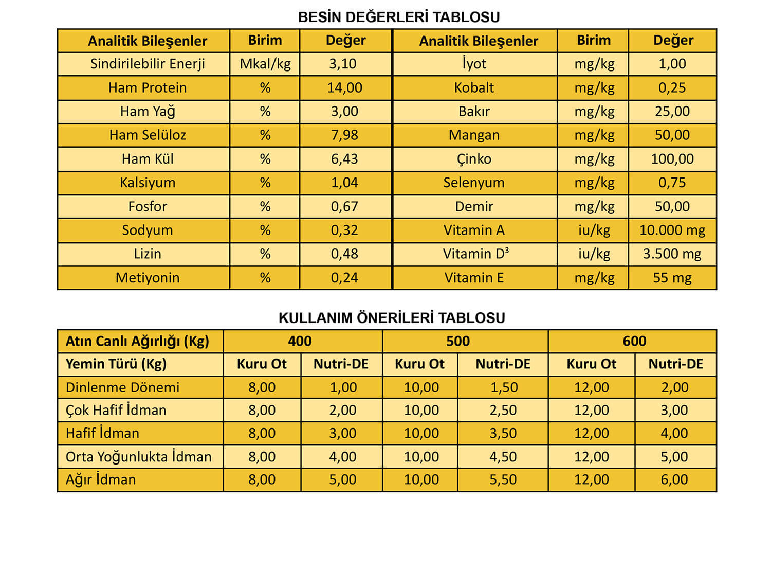 Nutri-D FARM MIX at yemi atların kondisyonlarının istenilen düzeye gelmesini sağlarken, uluslararası standartlarda premiksi ile atların vitamin ve minerâl ihtiyaçlarını da karşılar.